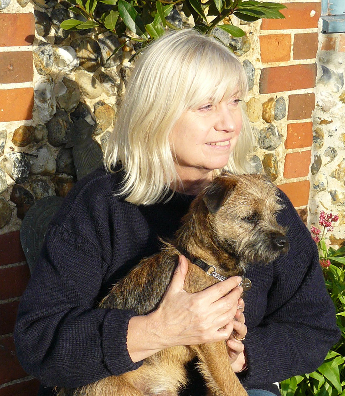 - Jane outside her studio with Hamish, one of her Border Terriers, 2011